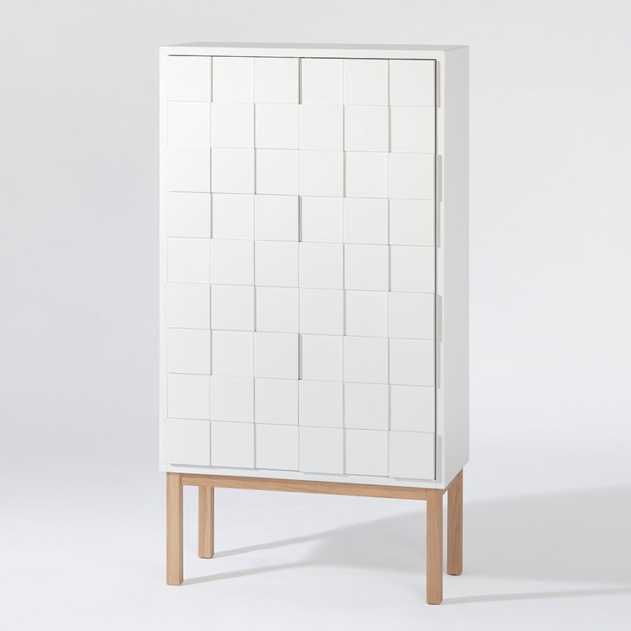 Sara Larssonin suunnittelemassa kaapissa on puhtaat ja suorat linjat. Kaapissa on kaksi siirrettävää hyllyä. Jalat; valkoinen, tammi tai valkoöljytty tammi.
