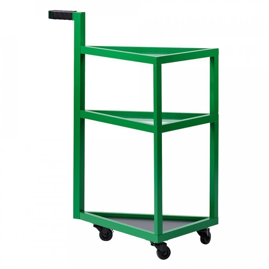 Move on kolmion muotoinen tarjoilupöytä, jota voi myös käyttää sivupöytänä.