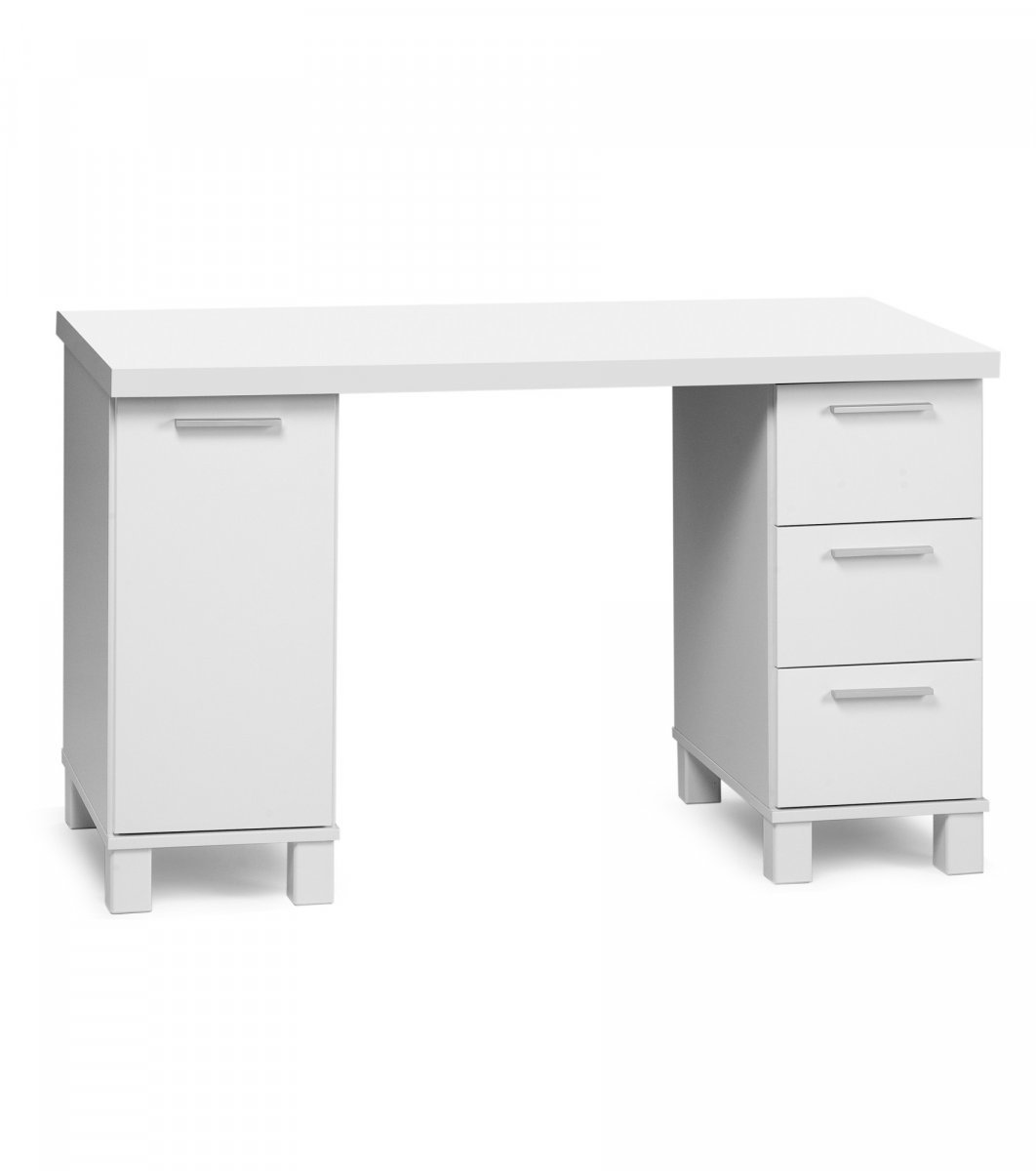 Suomessa valmistetussa Aamu-kirjoituspöydässä on hyllyllinen kaappi, 3 vetolaatikkoa sekä valkoinen kansiosa. Tilaa Aamu-huonekalut Hobby Hallista!