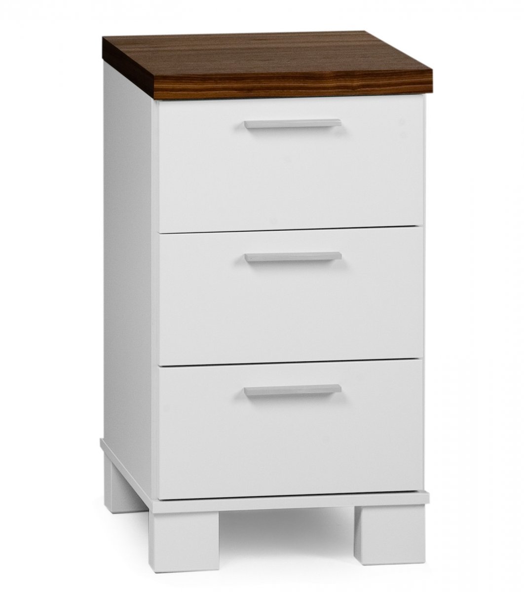 Suomessa valmistetussa, valkoisessa Aamu-lipastossa (40 cm) on pähkinänvärinen kansi ja 3 vetolaatikkoa. Metallivetimet. Tutustu Aamu-huonekaluihin!
