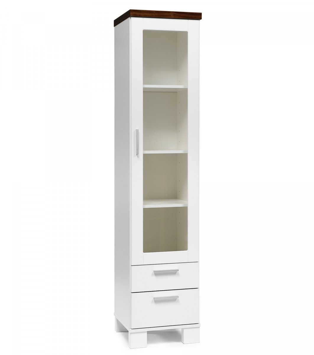 Suomessa valmistetussa Aamu-vitriinissä (40 cm) on yksi kiinteä ja 2 säädettävää hyllyä, lasiovi, 2 vetolaatikkoa ja pähkinänvärinen kansiosa. Tutustu!