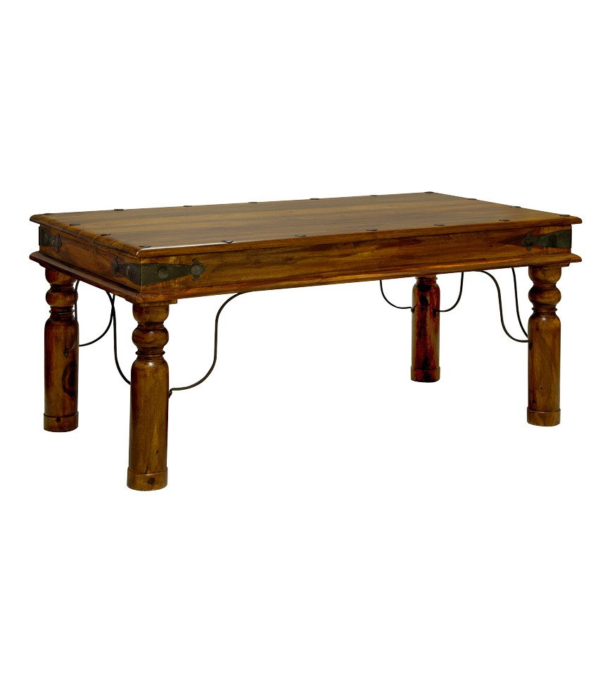 Ruskean Acazia-sohvapöydän kulmissa on metallikoristeet. Akaasiapuuta. Tilaa tyylikkäät Acazia-huonekalut Hobby Hallista!