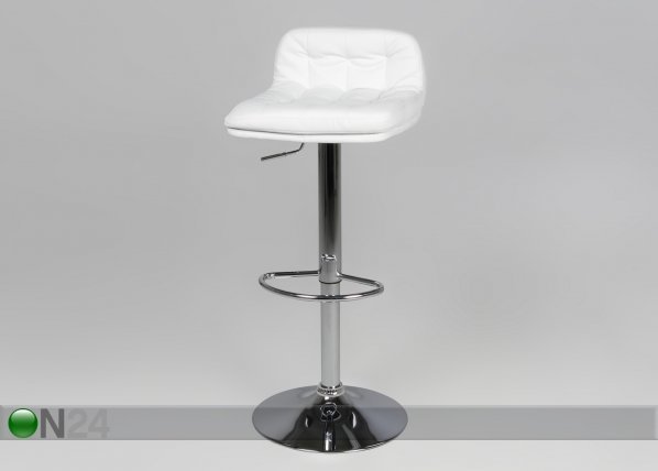 Baarituolin istuin ja selkänoja on verhoiltu valkoisella keinonahalla – istuinkorkeuden säätö kaasujousella -… Lue lisää »