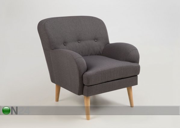 Nojatuoli on verhoiltu tummanharmaalla kankaalla (Town dark grey 33) – selkänojassa on kolme… Lue lisää »