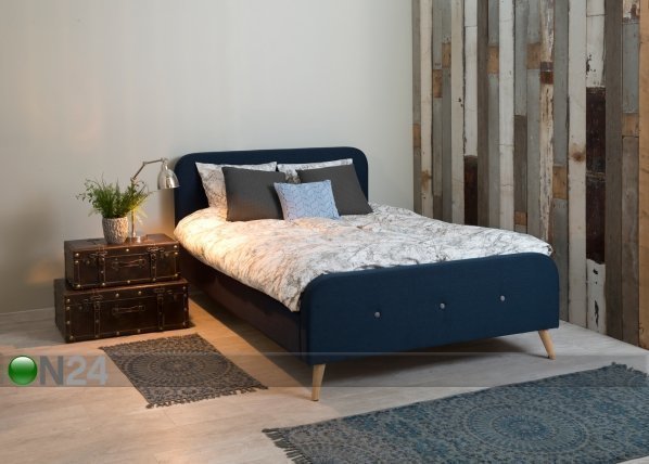 Sänky on verhoiltu tummansinisellä kankaalla (Town dark blue 18) – koristeniitit päällystetty vaaleanharmaalla… Lue lisää »