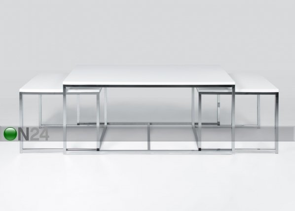 Valkoinen, korkeakiiltoinen sohvapöytäryhmä on valmistettu laadukkaasta MDF-levystä – ryhmään sisältyy yksi suurempi ja… Lue lisää »