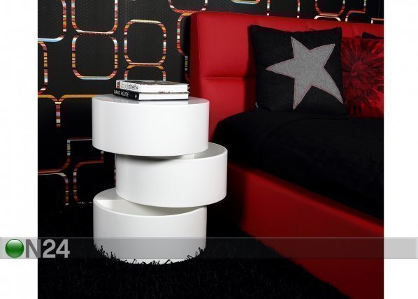 Sohvapöytä on valmistettu puusta, viimeistelty valkoisella mattalakalla – pöytasoissa on säilytystilaa… Lue lisää »