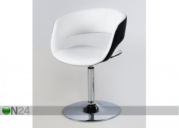 Tuolin sisäpuoli on verhoiltu lumenvalkoisella keinonahalla, ulkopuoli mustalla keinonahalla – kromattu jalka… Lue lisää »