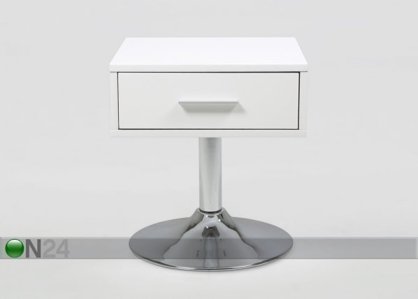 Puinen yöpöytä on viimeistelty valkoisella mattalakalla – laatikko liukuu metallikiskoilla – vedin on… Lue lisää »