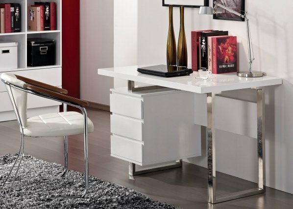 Valkoinen, korkeakiiltoinen tietokonepöytä on valmistettu MDF -kalustelevystä – kolme metallikiskoilla liukuvaa laatikkoa -… Lue lisää »