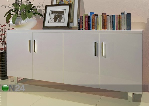 Valkoinen, korkeakiiltoinen lipasto on valmistettu mdf-kalustelevystä – neljä ovea, joissa vaimeasti sulkeutuvat saranat… Lue lisää »