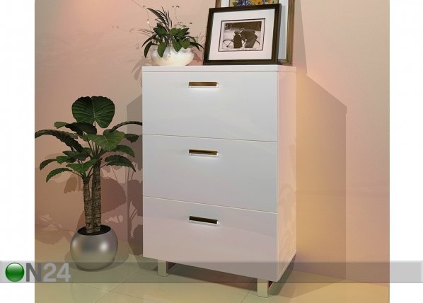 Valkoinen, korkeakiiltoinen lipasto on valmistettu mdf-kalustelevystä – kolme vaimeasti sulkeutuvaa laatikkoa metallikiskoilla -… Lue lisää »