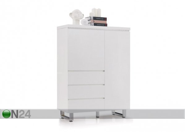 Valkoinen, korkeakiiltoinen lipasto on valmistettu mdf-kalustelevystä – kolme metallikiskoilla liukuvaa laatikkoa ja kaksi… Lue lisää »