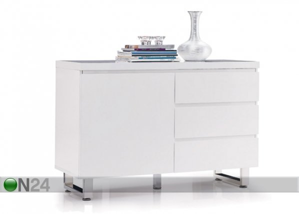 Valkoinen, korkeakiiltoinen lipasto on valmistettu mdf-kalustelevystä – kolme metallikiskoilla liukuvaa laatikkoa ja yksi… Lue lisää »