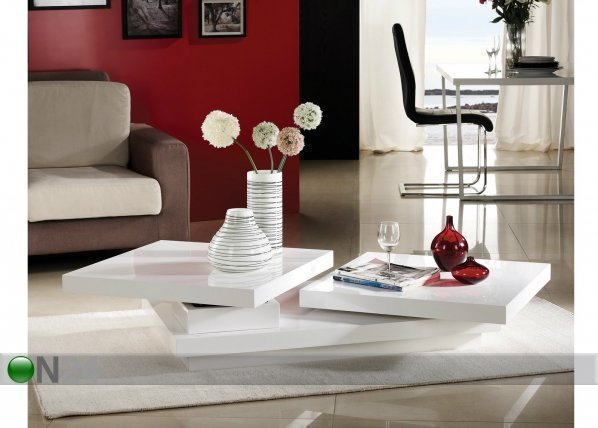 Valkoinen, korkeakiiltoinen sohvapöytä on valmistettu mdf-kalustelevystä – pöydässä on kaksi eritasoista tasoa, 360˚… Lue lisää »