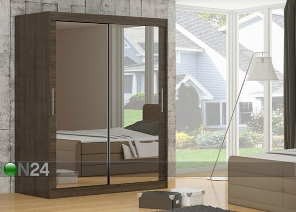 Liukuovinen vaatekaappi on valmistettu laminoidusta kalustelevystä – vasemmanpuoleisen oven takana on yksi hylly… Lue lisää »