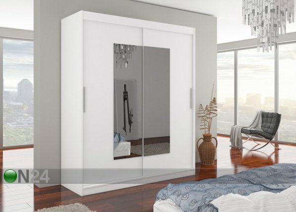 Liukuovinen vaatekaappi on valmistettu laminoidusta kalustelevystä – vasemmanpuoleisen oven takana on yksi hylly… Lue lisää »