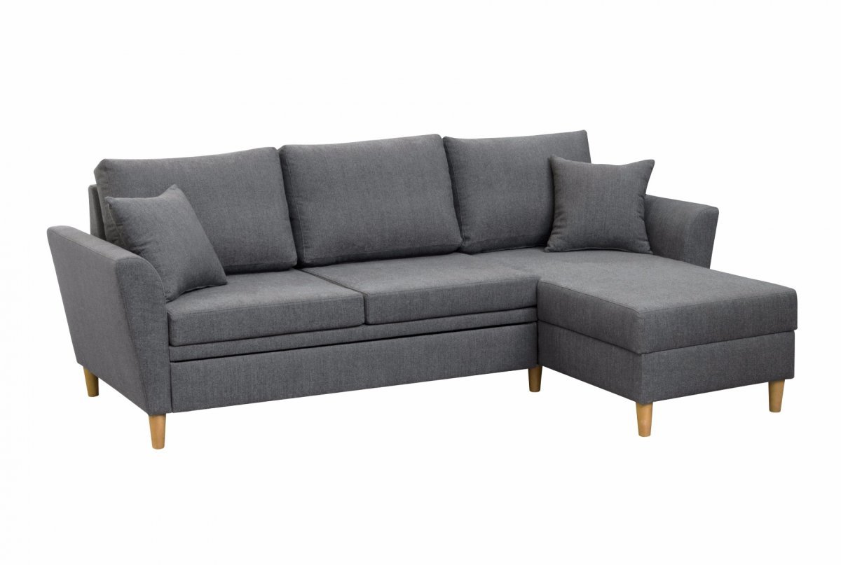 Tummanharmaa Anton-kulmadivaani/varavuode on moderni ratkaisu. Nukkumatilaa 2 aikuiselle. Ostoksille!