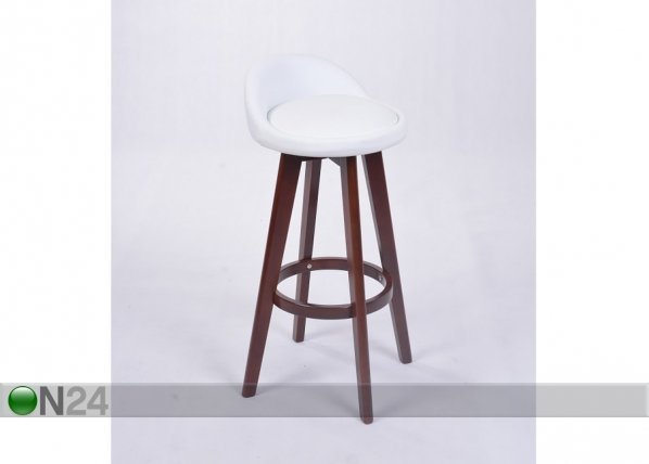 Baarituolin istuin on verhoiltu valkoisella keinonahalla – pehmusteena on ohut vaahtomuovi – puiset… Lue lisää »