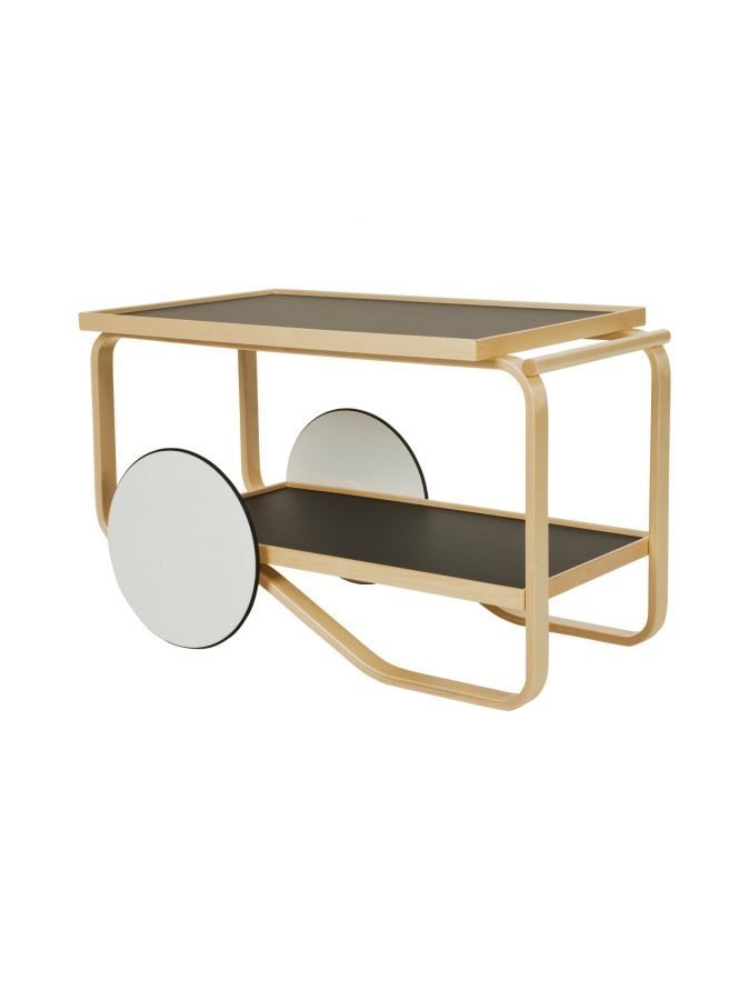 Alvar Aallon designklassikon on uudelleentulkinnut Hella Jongerius vuonna 2015. Vaunun linjakkaat muodot ovat taivutetun koivurungon, suurien pyörien ja linoleum-pöytätason yhteistulos. Pituus on 90 cm, leveys 50 cm ja korkeus 56 cm.
