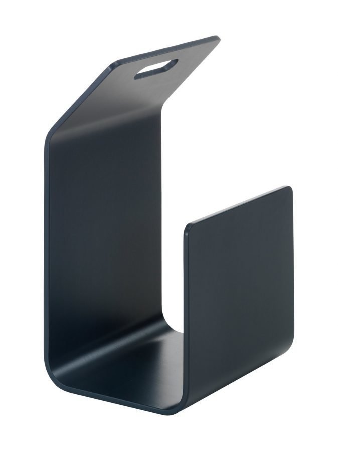 Pancho Nikanderin vuonna 2004 suunnittelema kekseliäs kantoteline on taivutettua koivuvaneria. Mitat 56,5 x 34 x 28,3 cm.