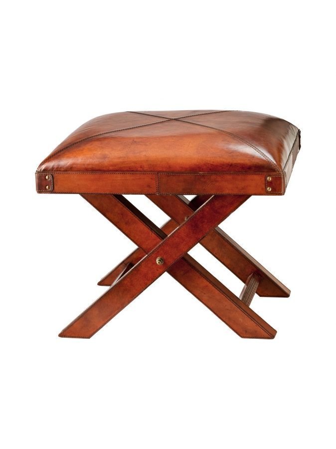 Klassisen kaunis jakkara on myös näyttävä sisustuselementti. Jakkara on viimeistelty käsityönä ja päällystetty laadukkaalla nahalla. Mitat ovat 55 x 47 x 46 cm.