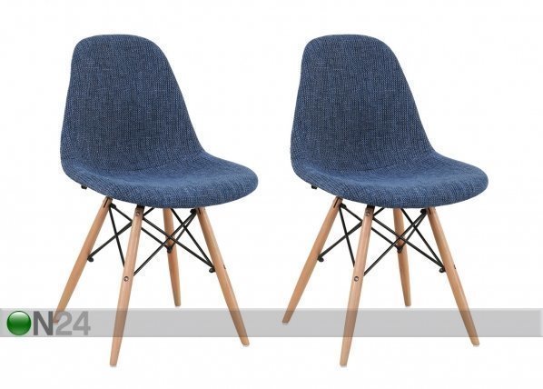 Toimitukseen sisältyy kaksi tuolia – muovi-istuin on verhoiltu sinisenkirjavalla kankaalla – runko on… Lue lisää »