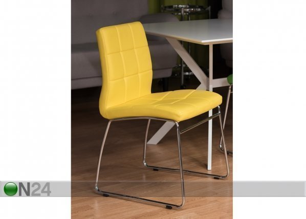 Toimitus sisältää kaksi tuolia – muovi-istuin on verhoiltu keltaisella keinonahalla – runko ja… Lue lisää »