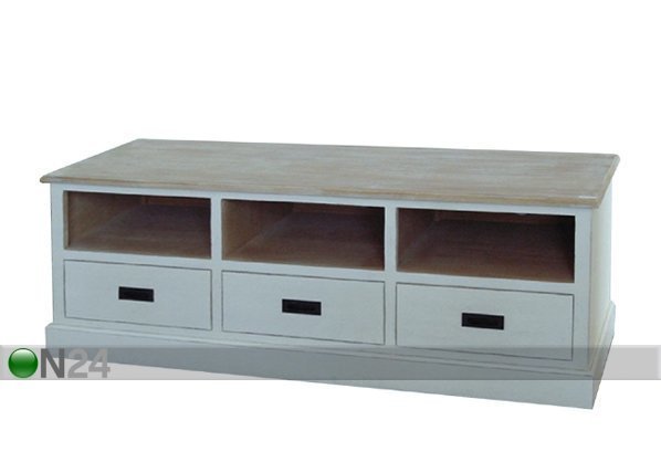 Valmistettu pauloniapuusta – valkoisessa tv-tasossa on kolme laatikkoa ja avotilaa, ruskea kansi -… Lue lisää »