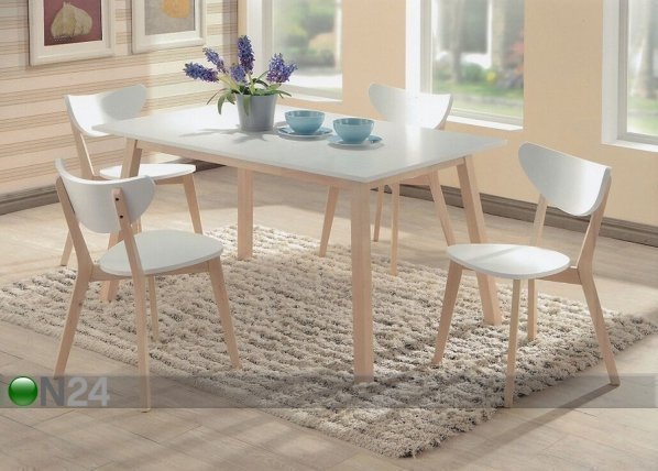 Ryhmään kuuluu pöytä ja neljä tuolia – pöydän kansi on valmistettu MDF-levystä, jalat… Lue lisää »