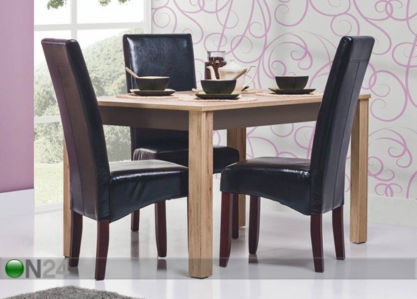 Jatkettava ruokapöytä on valmistettu laminoidusta kalustelevystä, tummat listat MDF-kalustelevyä – viimeistely: dab sanremo/latte… Lue lisää »