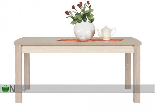 Ruokapöytä on valmistettu fooliumpinnoitetusta kalustelevystä – viimeistely: kiiltävä jasmiini / vaalea tammi -… Lue lisää »