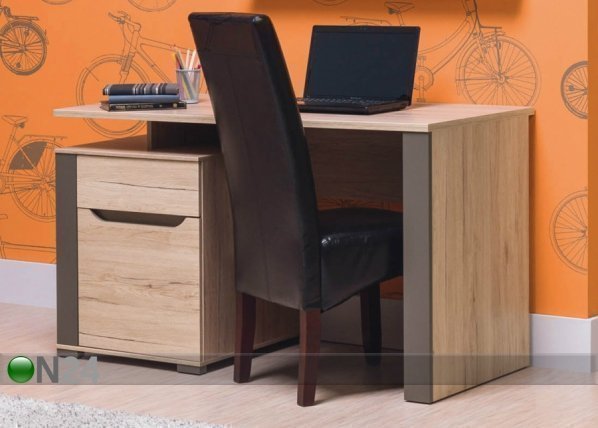 Kirjoituspöytä on valmistettu laminoidusta kalustelevystä, tummat listat MDF-kalustelevyä – oven takana ei ole… Lue lisää »