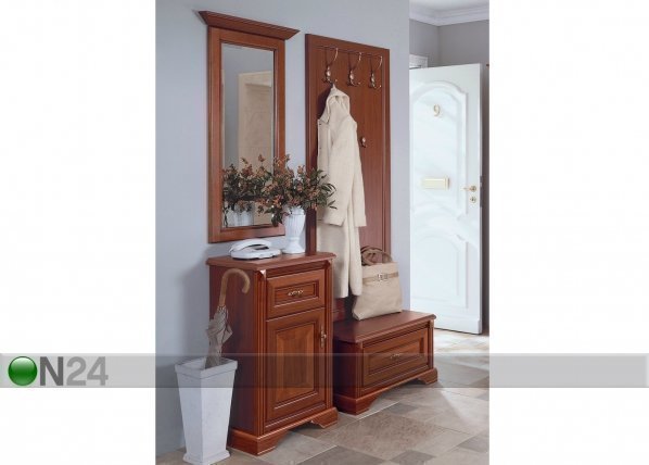 Naulakko on valmistettu fooliumpinnoitetusta kalustelevystä, listat MDF kalustelevyä – viimeistely: antiikkikirsikka – ripustuskoukut… Lue lisää »
