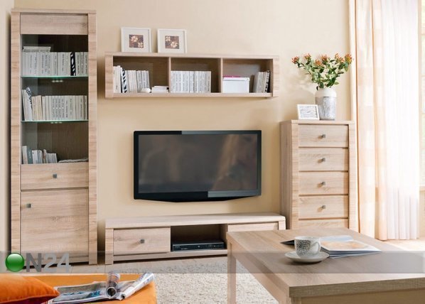 Vitriinikaappi on valmistettu fooliumpinnoitetusta kalustelevystä – ylemmän oven takana on kaksi lasihyllyä -… Lue lisää »