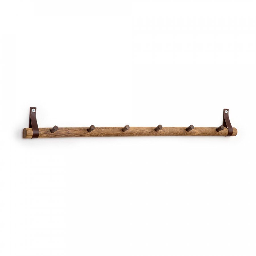 Rack by Wirth. Inspiraatio naulakkoon on saatu tavallisista koukuista. Rack ripustinta on kahta eri kokoa ja ne sopivat niin suuriin kuin pieniinkin tiloihin. Nahkakiinnikeet ja tanko ovat kiinni toisissaan.