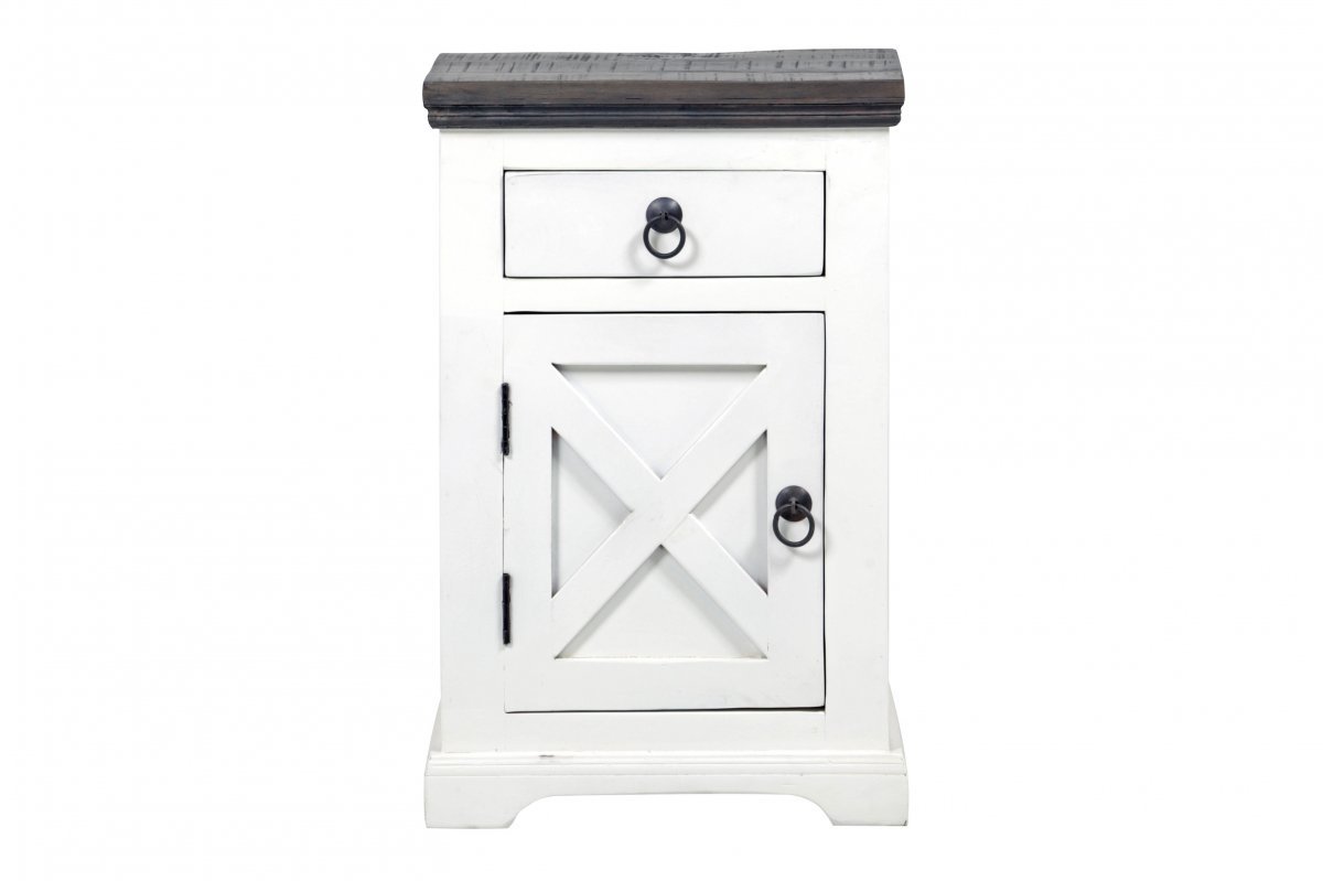 Käsityönä valmistettu Calais-yöpöytä/lipasto on mangopuuta. Petsattu kansiosa. Vetolaatikko ja kaappi. Ostoksille!