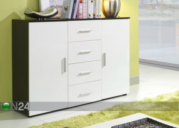 Lipasto on valmistettu laminoidusta kalustelevystä – lipaston etupinnoissa on korkeakiilto – ovien takana… Lue lisää »