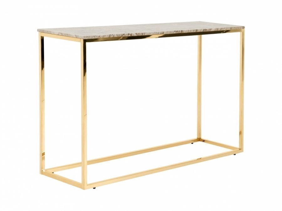 Marmoripöytä elegantin minimalistisella muotoilulla. Tässä apupöydässä on beige marmorilevy ja vankka kehikko messinkipinnoitettua terästä, yhdistelmä… Lue lisää »