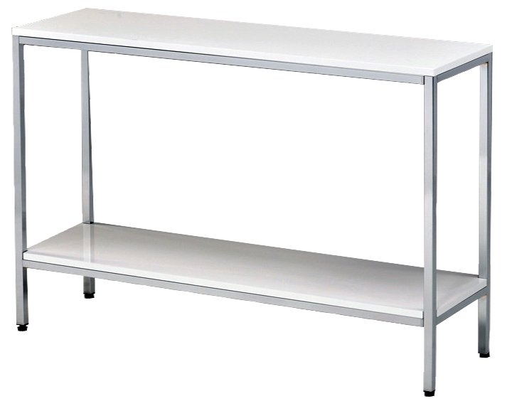 Tyylikkäässä Cava-100-sivupöydässä on kaksi tasoa. Valkoinen mdf-kansi ja kromatut metallijalat. Ostoksille!