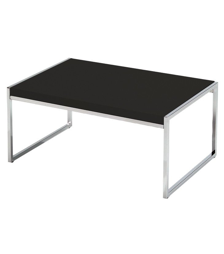 Tyylikkään Cava-sohvapöydän kansi on korkeakiiltoista mustaa kalustelevyä. Jalat ovat kromattua metallia. Tilaa sohvapöytä Hobby Hallista!