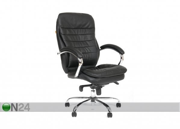 Työtuolin istuintyyny ja selkänoja on verhoiltu mustalla nahalla – käsinojat ovat metallia, verhoiltu… Lue lisää »