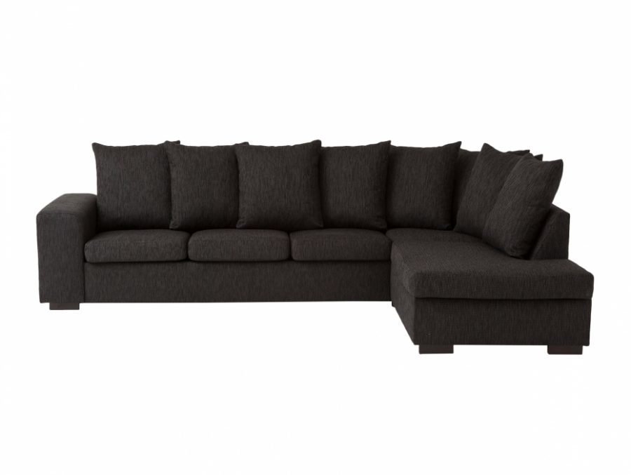 Musta L-sohva siroilla tyynyillä. Valitse avoin pääty joko oikealle tai vasemmalle. Mitat: L298 S90/193 K88… Lue lisää »