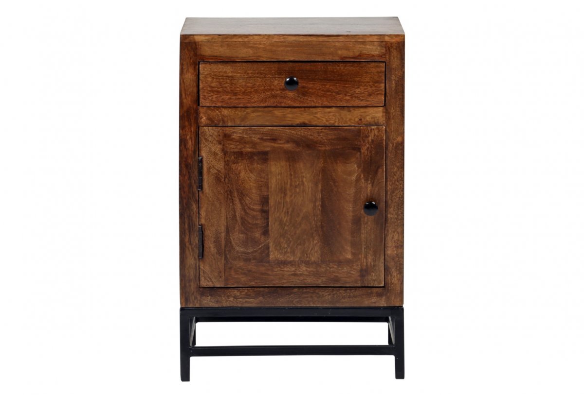 Colonial-yöpöytä/lipasto on valmistettu käsityönä mangopuusta ja metallista. Vetolaatikko ja kaappi. Ostoksille!