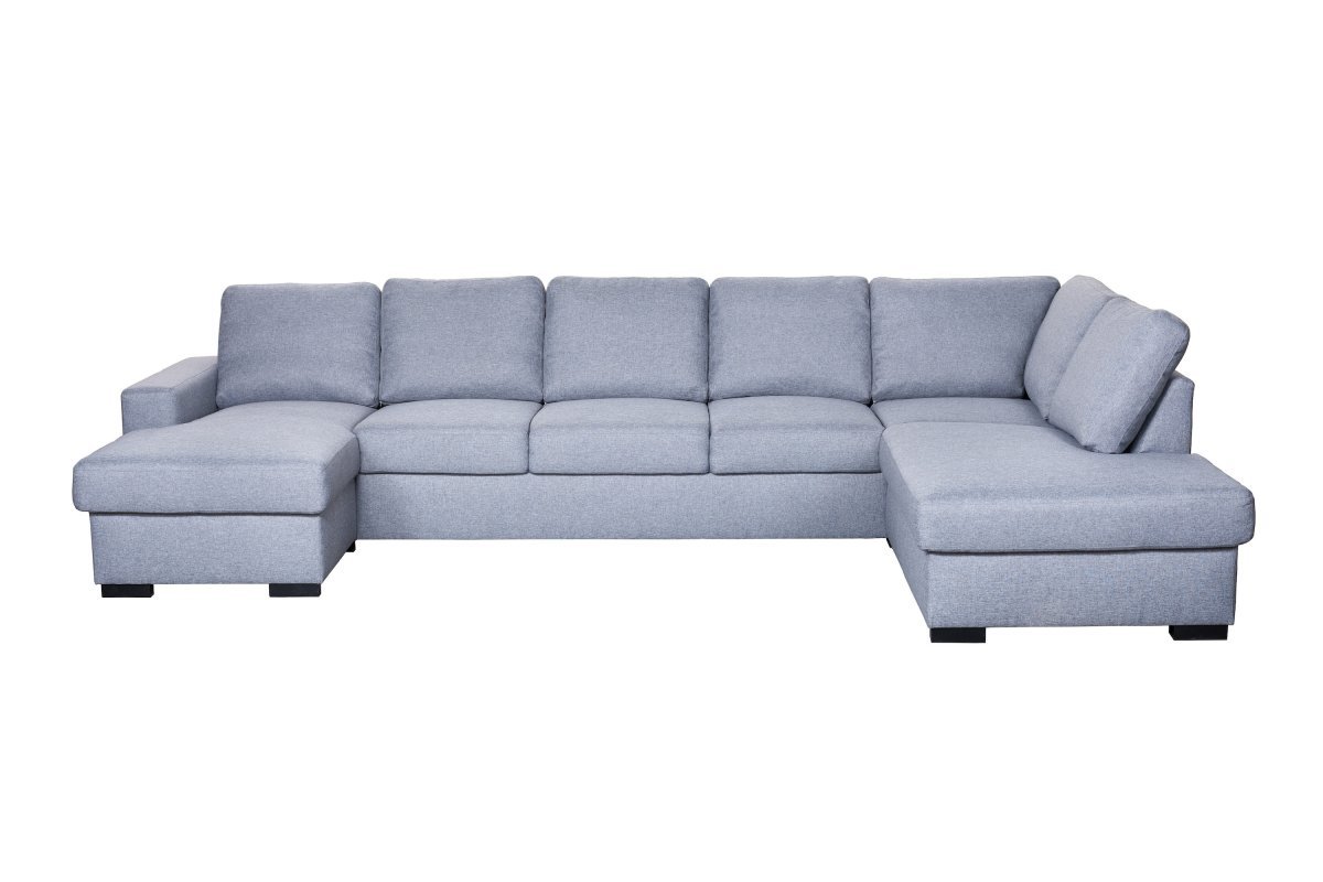 Puurunkoinen Como XL -U-kulmasohva on todella tilava. Verhoiltu laadukkaalla huonekalukankaalla. Harmaa. Ostoksille!