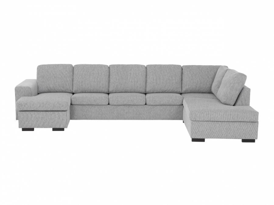 Vaaleanharmaa U-sohva. Saatavana avoimella päädyllä oikealle tai vasemmalle kääntyvänä. Mitat: L358 S153/193 K84 cm…. Lue lisää »