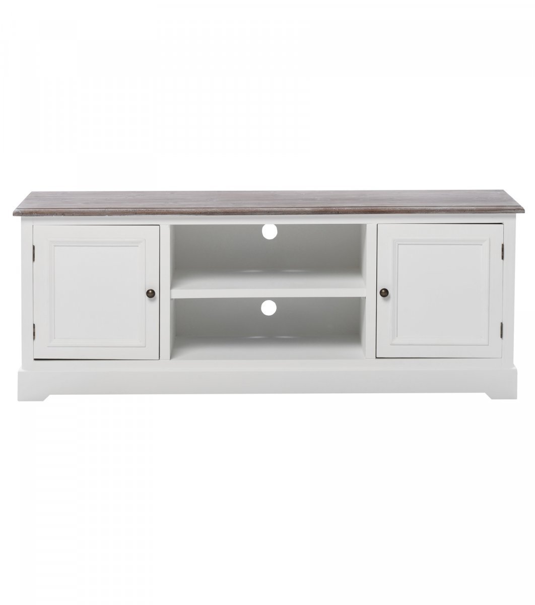Country-tv-taso henkii maalaisromantiikkaa. Valkoisessa tv-tasossa on harmaaksi petsattu, lakattu kansiosa, 2 kaappia + 2 lokeroa oheislaitteille. Tutustu!