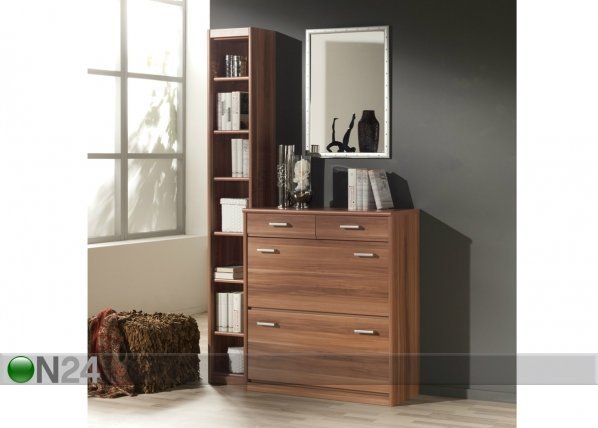 Eteisryhmä koostuu lipastosta ja korkeasta jalkinekaapista – valmistettu fooliumpinnoitetusta kalustelevystä – jalkinekaapissa on… Lue lisää »