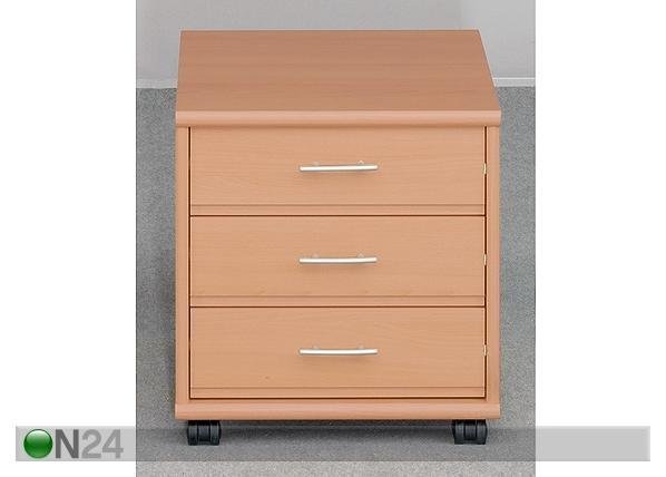 Pyörillä varustettu laatikosto on valmistettu pinnoitetusta kalustelevystä – laatikot liukuvat metallikiskoilla, vetimet muovista… Lue lisää »