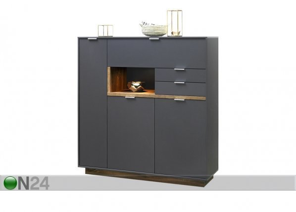 Kalustelevystä valmistetussa lipastossa on kaksi laatikkoa ja neljä ovea – vasemmanpuolisen korkean oven… Lue lisää »